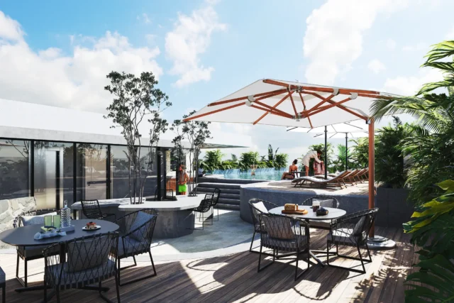 This 10-story, oceanfront tower offers all-inclusive 1- and 2-bedroom apartments. This residential complex combines a relaxed, nautical lifestyle with stunning beach views. Located just a short walk from the beach, it features a beach club for residents. With amenities such as swimming pools and barbecue grills, it’s an excellent option for a second home or a smart investment, situated in Costa Mujeres, Cancun’s newest and fastest-growing area.